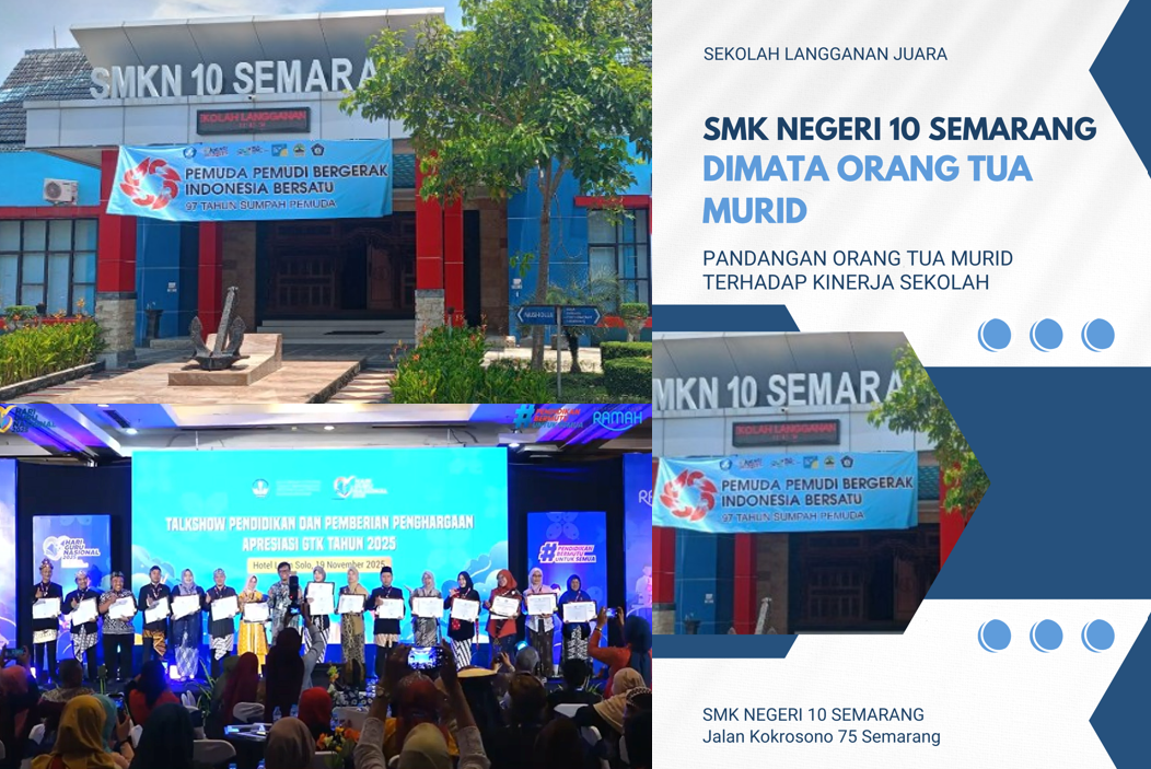 SEMARANG-Menjelang akhir masa pengabdiannya sebagai Kepala SMK Negeri 10 Semarang pada Desember 2025, perjalanan kepemimpinan Ardan Sirodjuddin, M.Pd selama empat tahun terakhir mendapat apresiasi istimewa dari orang tua murid. Pengalaman mengelola dan mentransformasi sekolah tersebut dipotret dalam sebuah buku berjudul SMK Negeri 10 Semarang di Mata Orang Tua Murid, yang memuat refleksi, kesaksian, serta pandangan langsung para orang tua terhadap perubahan dan dinamika sekolah.