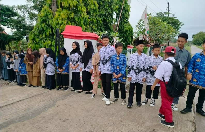 Sejak pagi, siswa kelas 6 yang ditunjuk sebagai “guru sehari” berdiri di gerbang sekolah sambil menyapa adik-adik kelas dengan sapa, salam, dan senyum. Dengan postur percaya diri dan gesture yang meniru para guru mereka, anak-anak itu berusaha memainkan peran sebaik mungkin. Kehadiran mereka langsung mencuri perhatian seluruh warga sekolah.